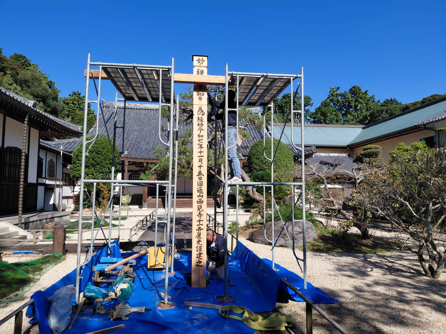 浜松市の西見寺様では晋山式を間近に控えた先日、角塔婆を建立させていただきました。