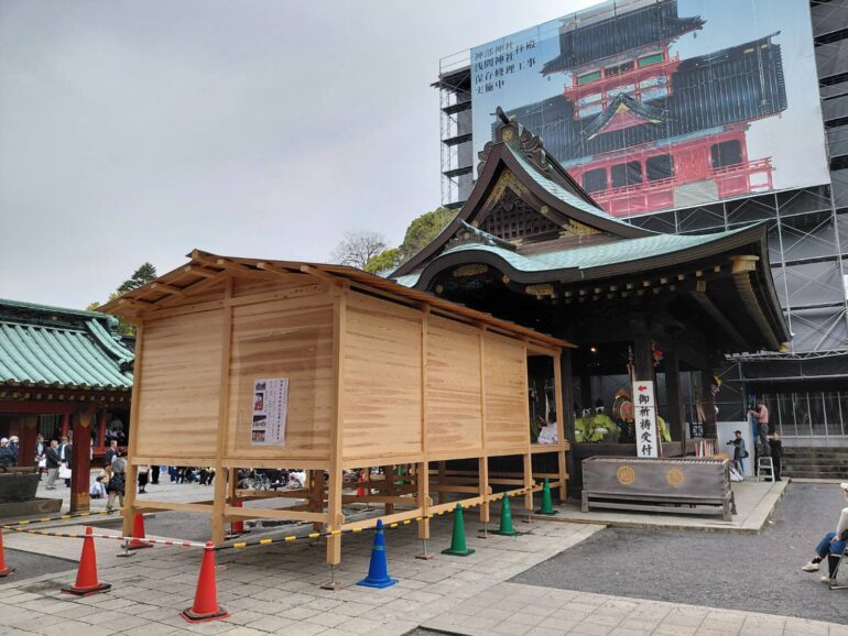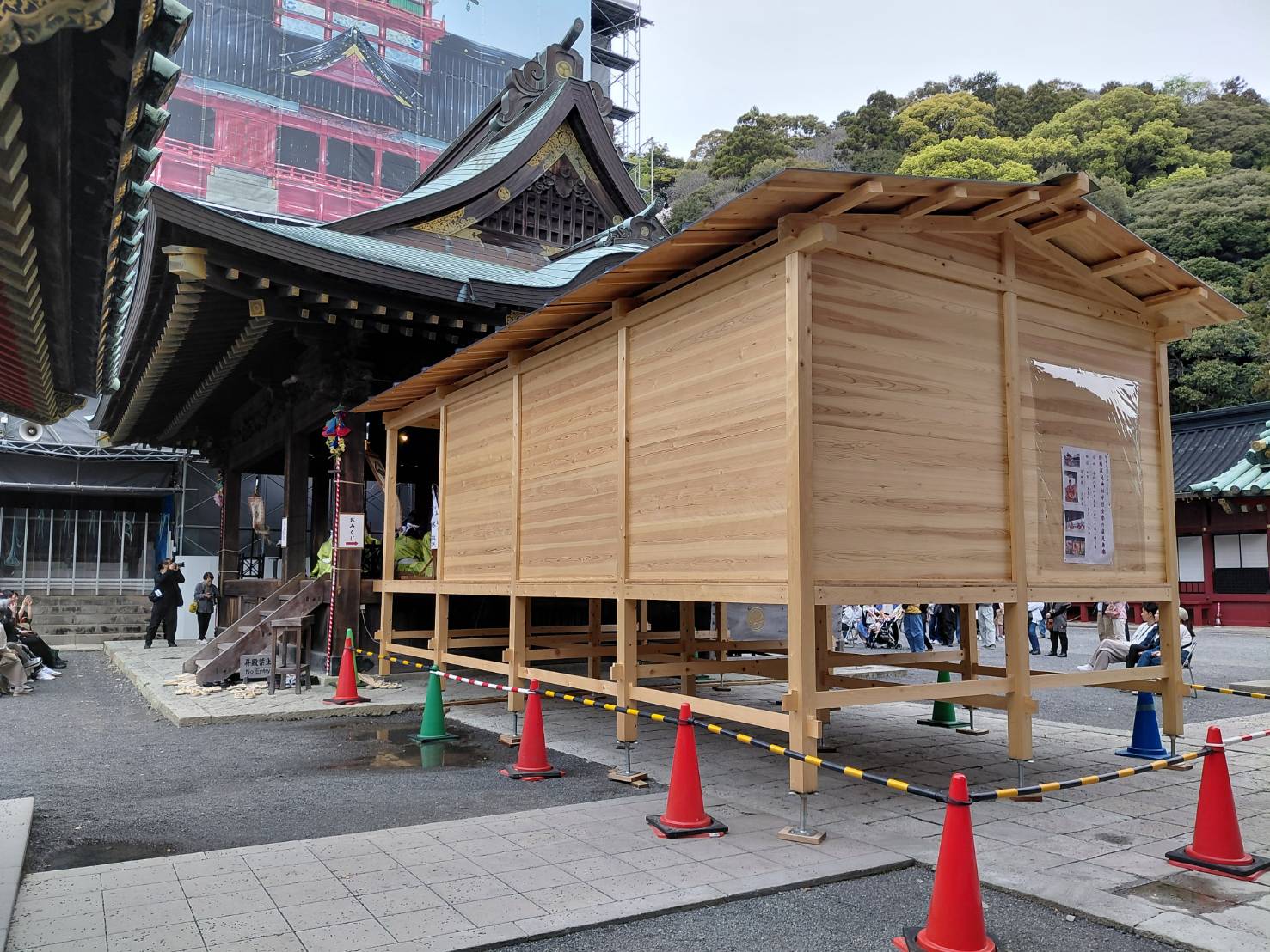 舞楽を舞う舞殿横に設置させていただいた天峰製作の楽屋は、控室としても使用し重要な建物として使われているのを見ることができ感激しました。