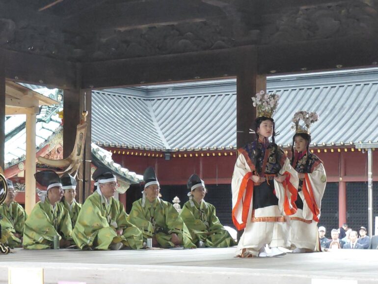 午後3時半からは、国の重要無形民俗文化財である『 古式稚児舞楽 』が奉奏され、