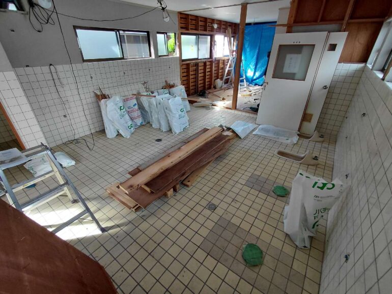 今回は男女を区切り、車いす使用可能な多目的トイレも作ります。