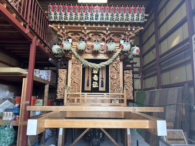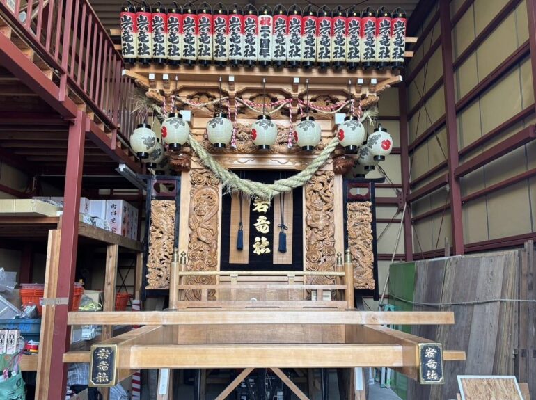 10月初旬である祭典前に、森町の牛飼地区屋台『 岩竜社 』様の手木小口金物を製作設置させていただきました。