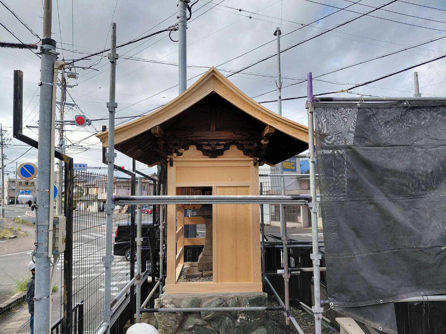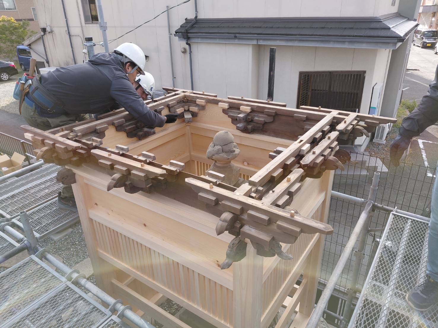 小松秋葉山常夜燈鞘堂の現場組立を行いました。