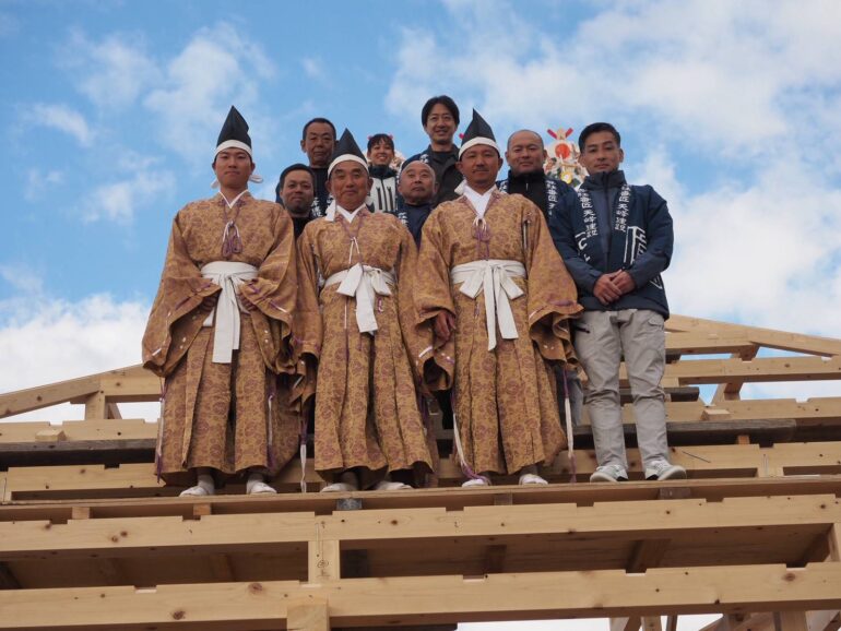 上棟式までの建て方工事は、安全に工程通り進みまして工匠の儀では佐野棟梁が工匠頭を務めました。