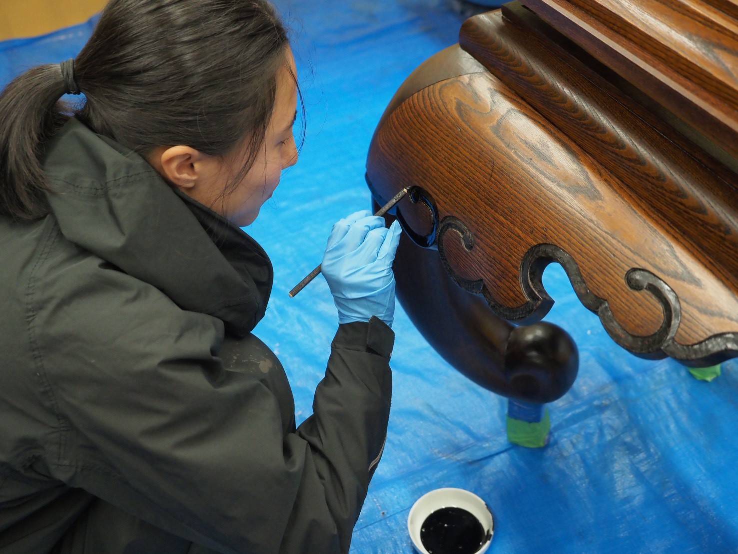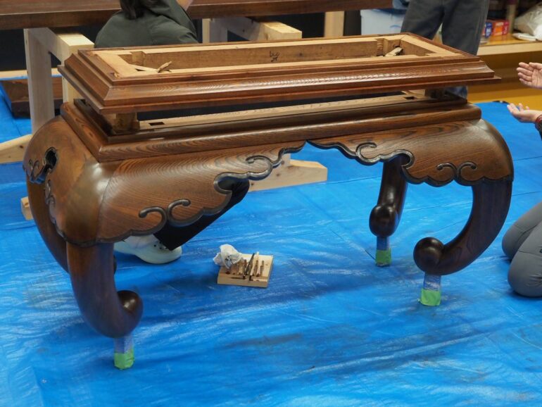 浜松市の大龍寺様前机のお化粧直しの様子です。