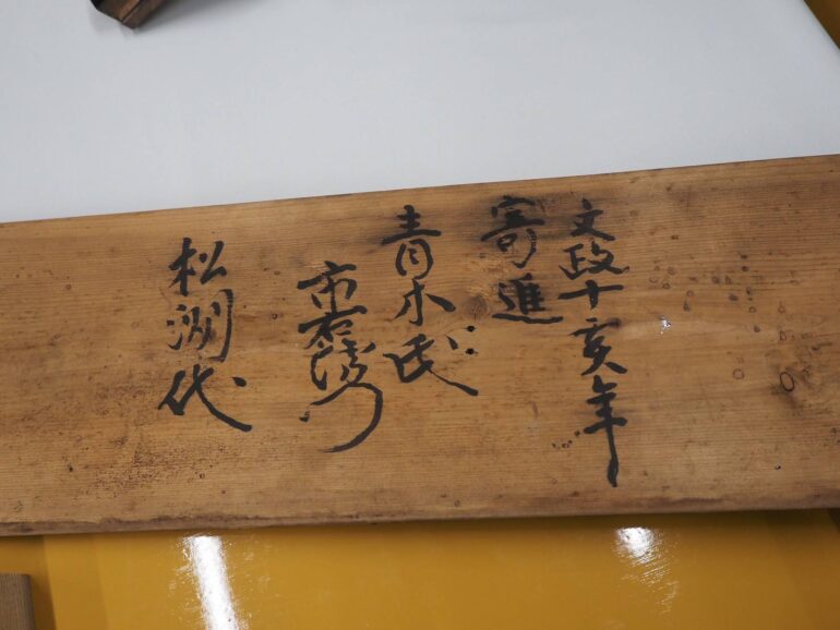 裏板には、文政十亥年と墨書あるため1827年なので198年前に造られたと思われます。