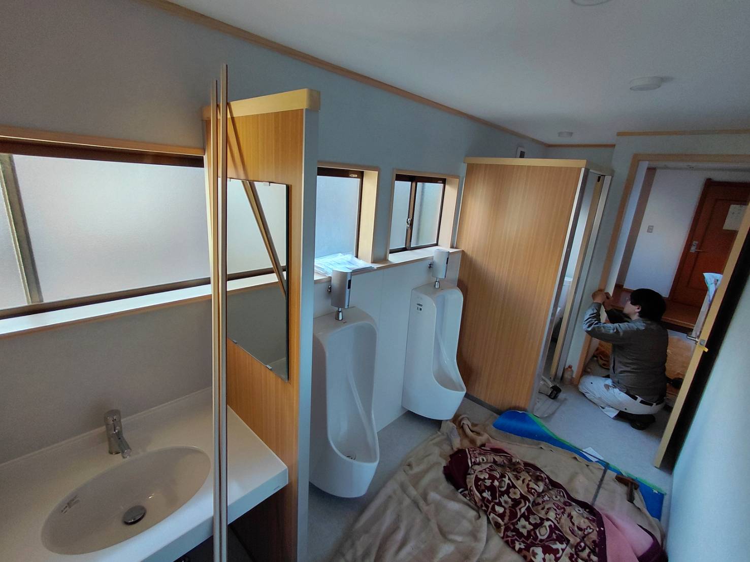 天峰ブログ 2025.12.18 バリアフリーで広く使いやすいトイレ完成間近 磐田市の連福寺様で書院トイレリフォーム工事が大詰めです。 建具屋さんが木製建具やトイレのブースを取付し、 クリーニングを行えば使用開始できますので、年末年始からは檀家さんにお使いいただけます。 2カ月半ご協力いただきましてありがとうございます。 広く使いやすくなったし、BFトイレ(バリアフリートイレ)も別で用意しましたので車椅子の方にも安心してお使いいただけます。 掃除も楽になる仕上げ材にしてますので、お寺さんの負担も減りますね。 平松 Tweet Share +1 RSS 天峰ブログ