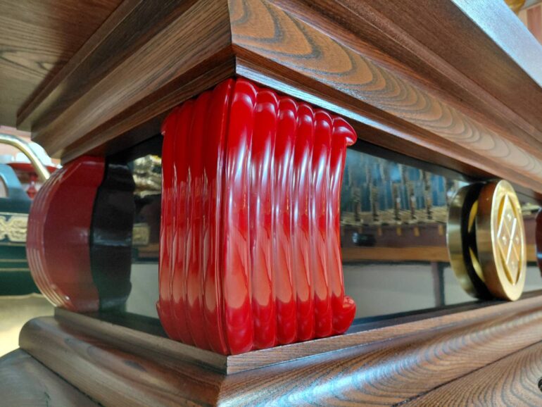 引揚げから、各部補修・木地修理~締め直し、漆塗り・金箔押し、納品組立まですべての工程において天峰社員で丁寧に施工させていただきました。