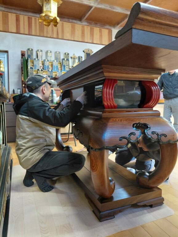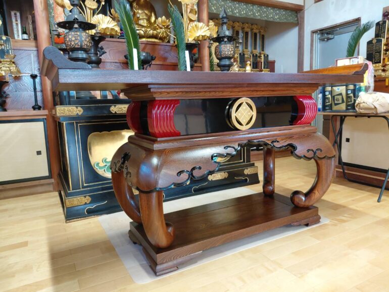 天峰伝統工芸部いしずえでは、年末に前机の修理及びお化粧直しが完了し大龍寺様へ納めさせて頂きました。