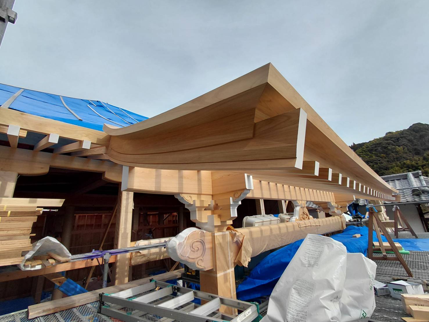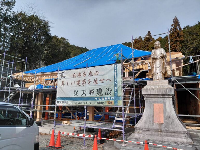 静岡市の極樂寺様本堂新築工事では化粧軒廻りの施工を進めています。