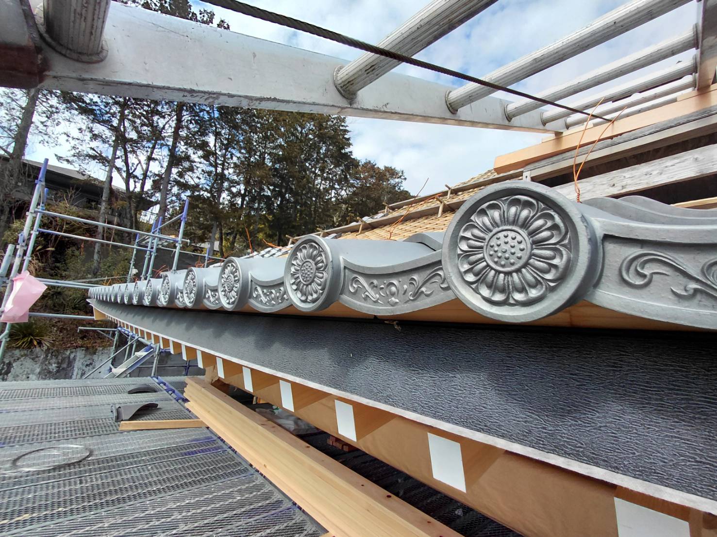 静岡市の極樂寺様本堂新築現場では屋根の瓦葺き工事が順調に進んでいます。