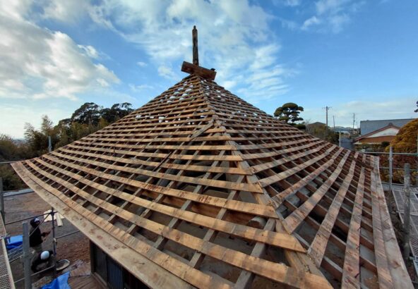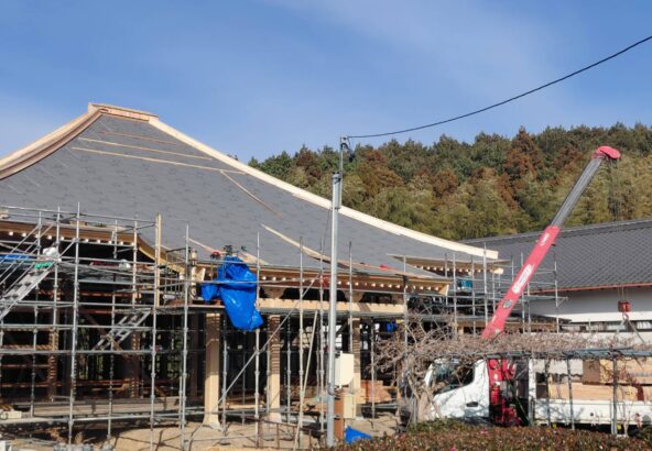 興嶽寺様本堂は屋根下地が完成します