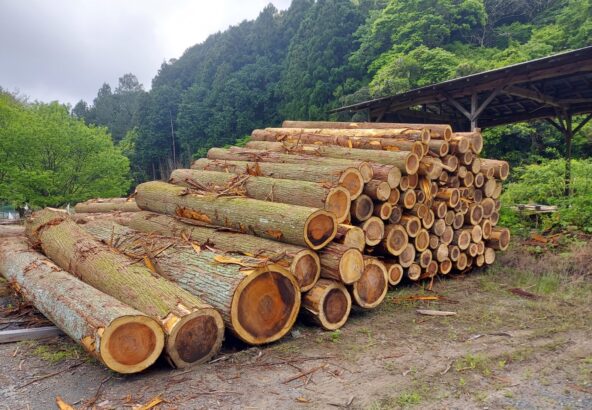 天峰製材所には原木丸太が続々と入荷中